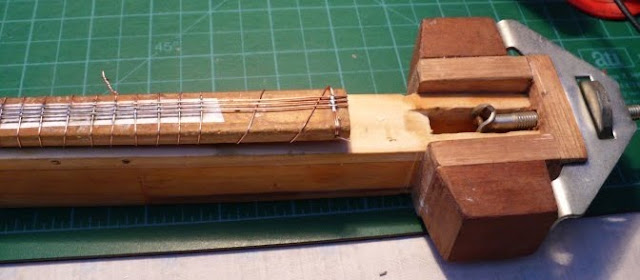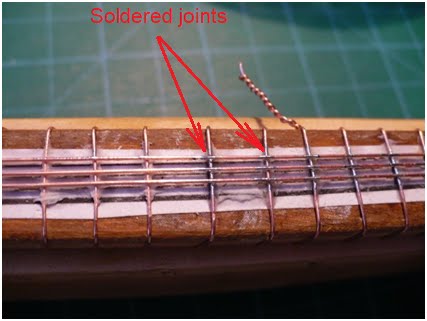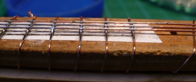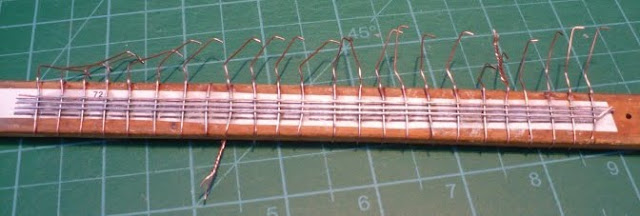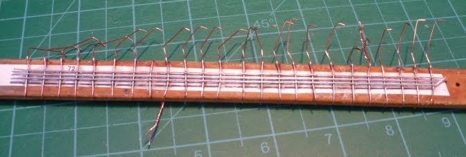 The ends of the wires are tack soldered to stop them unravelling and wooden spacers are made and fitted at each end.