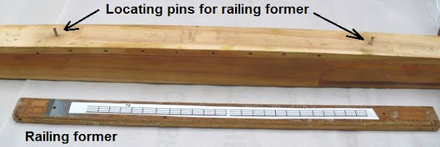 A drawing of the required railing is generated using MS paint or similar, printed out and glued to the railing former using a glue stick (Pritt).